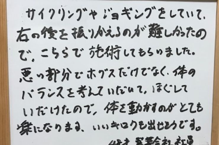 ほぐしていただけたので、体を動かすのがとても楽になります。