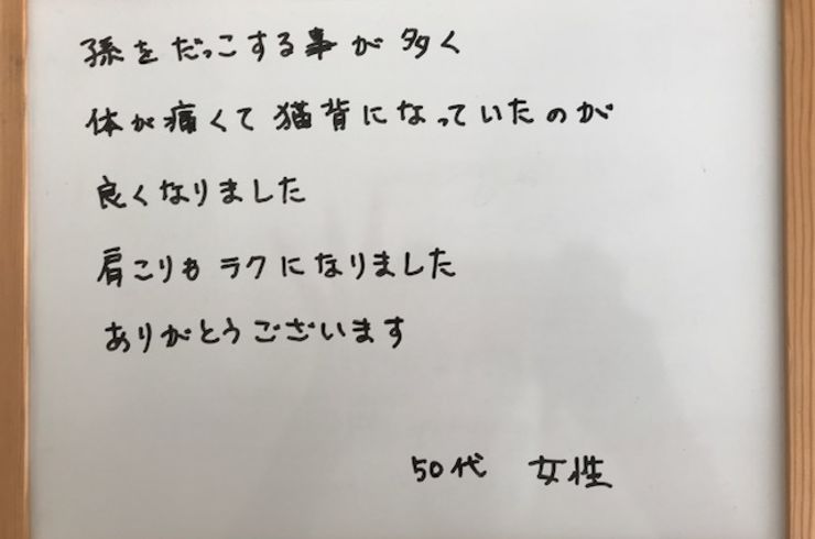 町田市で整体の施術を行っているつるまる整体には、これまで対応してきた様々なお客様からのお声が寄せられております。施術後に感謝の言葉を言ってくださる方やこれからもつるまる整体に通いたいとリピートをいただくこともございます。つるまる整体ではそのようなお客様を大切にして真摯な姿勢で対応しております。